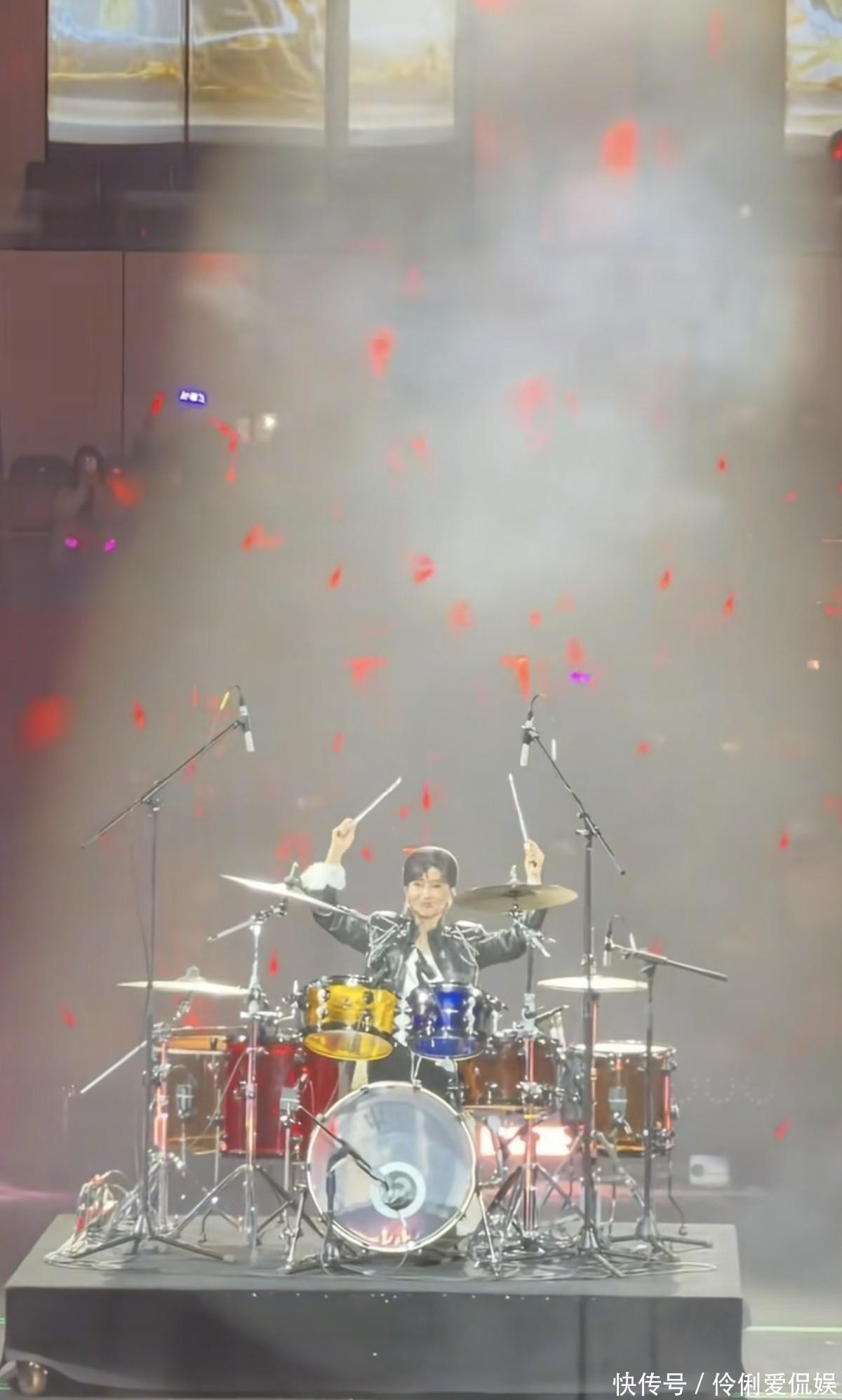比起雅芝姐美丽超凡的不老颜值最吸引人的是她那份对待工作的活力热忱和对待粉丝们的亲切友善。你看,姐姐打架子鼓的样子像不像一个酷酷的女生。