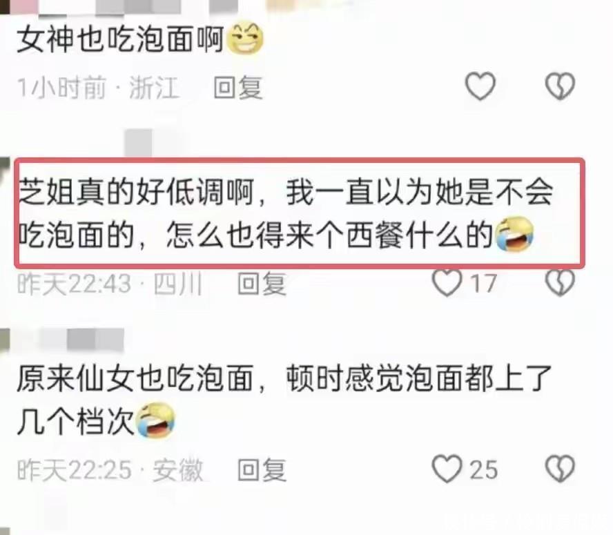 这份精致和讲究,相信是她一辈子持之以恒的漂亮小秘诀哦!网友们看到了赵雅芝姐姐吃泡面的照片后纷纷留言。感觉以后吃的泡面不再是曾经的泡面而是仙女面!
