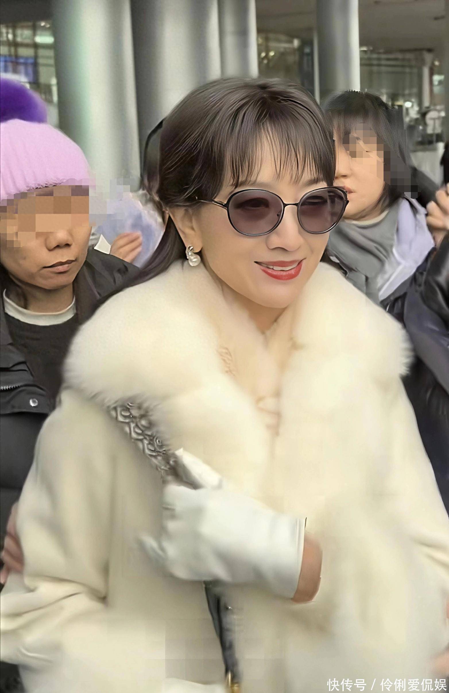 当天姐姐一身白色大衣长裤,毛茸茸的袖口雍容华贵白色手套又增添了几分女人味。72岁的她身姿轻盈体态优美,一点也不看出是当奶奶的年纪了。她和小自岁的助理站在一起,非凡的气质很出挑。